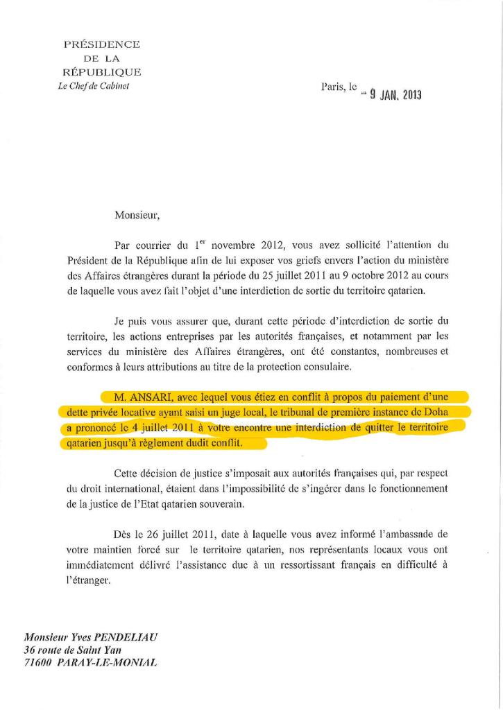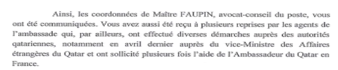 J’ai été séquestré au moyen d’un travel ban permanent sans recours possible, et par Monsieur Alain Juppé, la diplomatie française, Monsieur William Bourdon, Mathieu Faupin, dans le cadre de l’attribution de la coupe du monde de football 2022 au Qatar, du rachat du PSG, de la création de la chaîne Bein Sport. Nulle dette/créance ne m’était réclamée par la justice Qatari. J’étais bloqué à perpétuité dans l’émirat par un travel ban sans recours possible car sans plainte à mon encontre, prisonnier de la charia et de la kafala. La dette a été inventée par Alain Juppé.