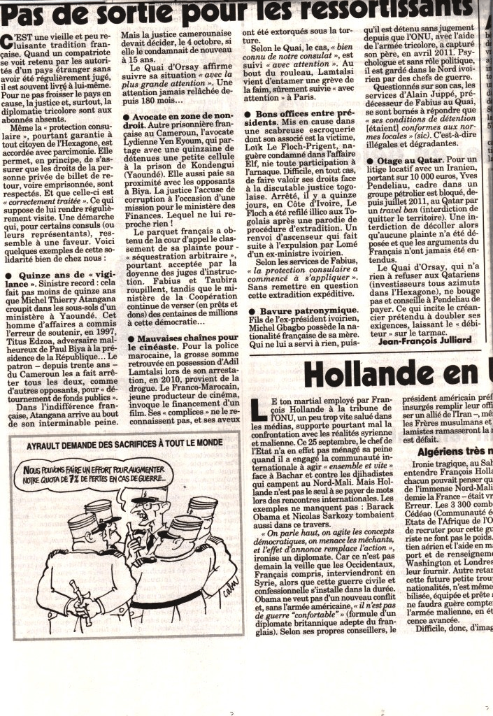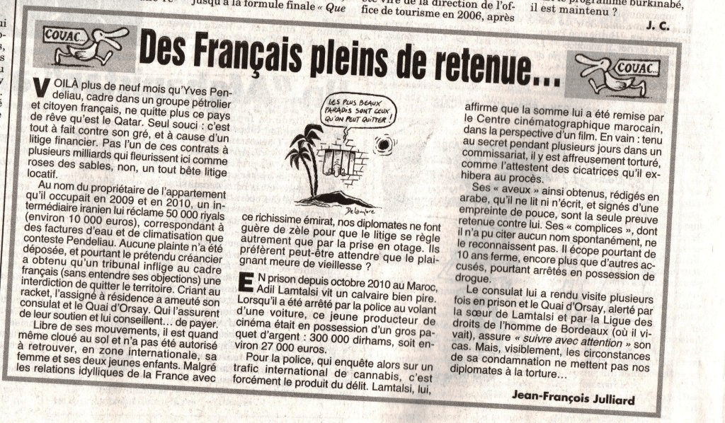 En 2012, Monsieur Jean-François Julliard avait fait paraître dans le Canard Enchainé deux articles dans lesquels était mentionnée ma séquestration au Qatar.