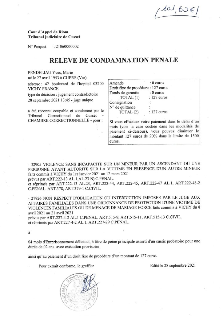 Rien n’a été fait fait pour secourir mes deux enfants en situation dramatique, bien au contraire Madame le juge Elsa Aussavy m’a condamné et interdit de tout contact avec mes filles durant ans à partir du 28 septembre 2021, privant ainsi deux innocentes, du secours d’un père, sous le faux prétexte de violences sur ma famille entre le 01 janvier 2021 et le 12 mars 2021.