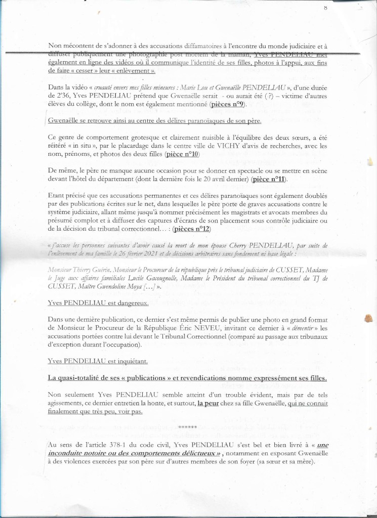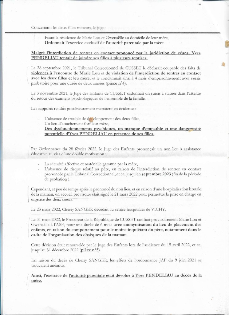 La justice de l’Allier et du Puy de Dôme, Monsieur le préfet de l’Allier , Monsieur le président de l’aide sociale à l’enfance, sont les acteurs majeurs de la situation désastreuse de Marie-Lou et Gwenaëlle Pendeliau.
